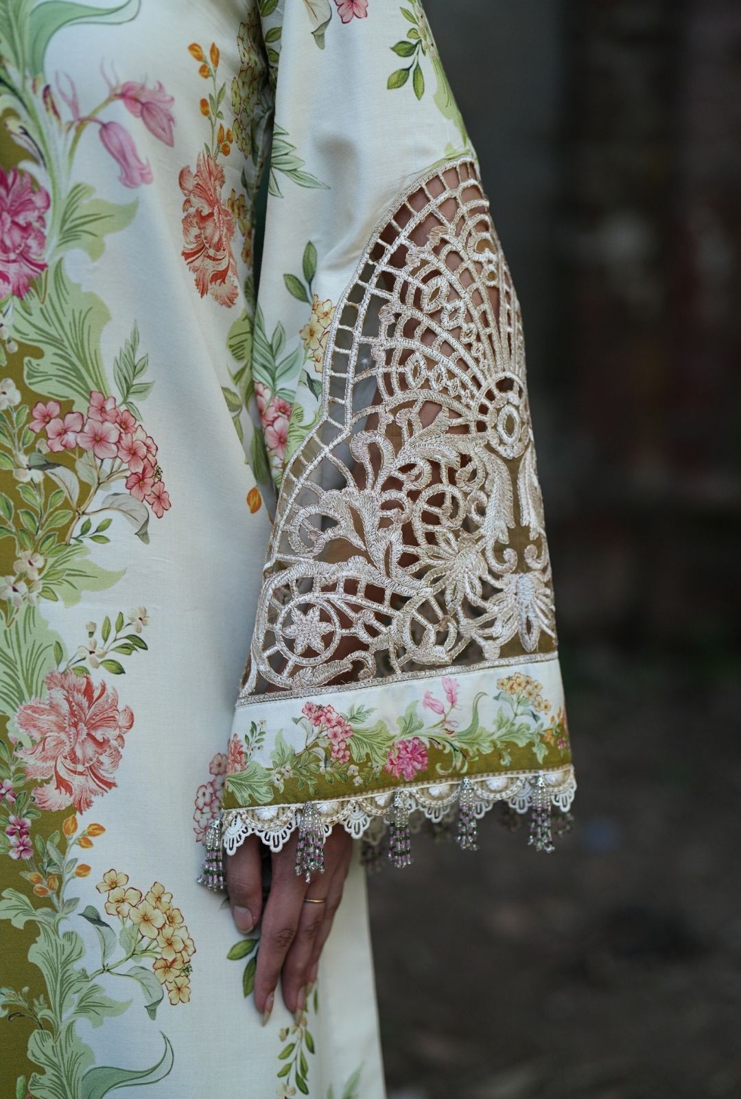 Embroidered organza sleeves motives
