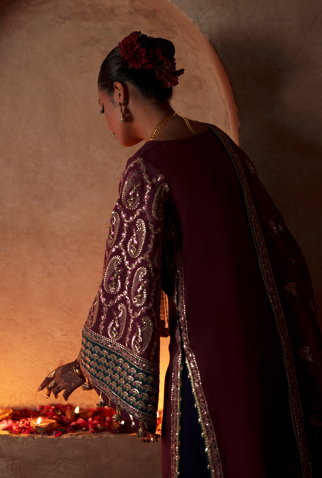 - Sequin embroidered rawsilk sleeves