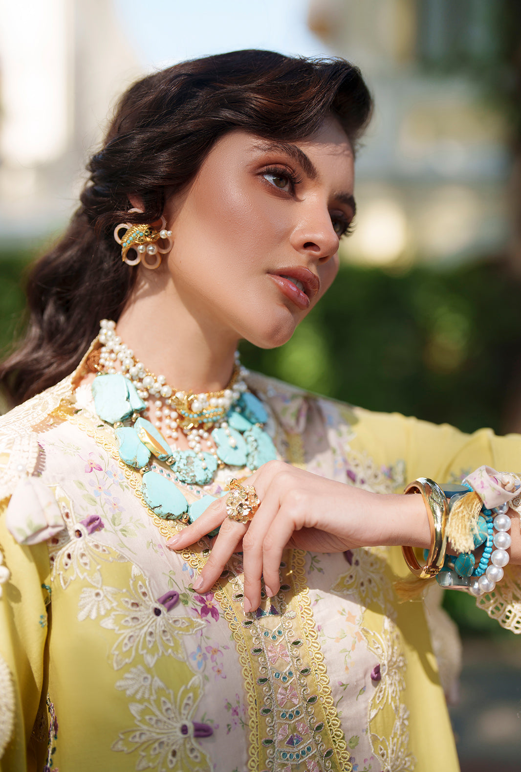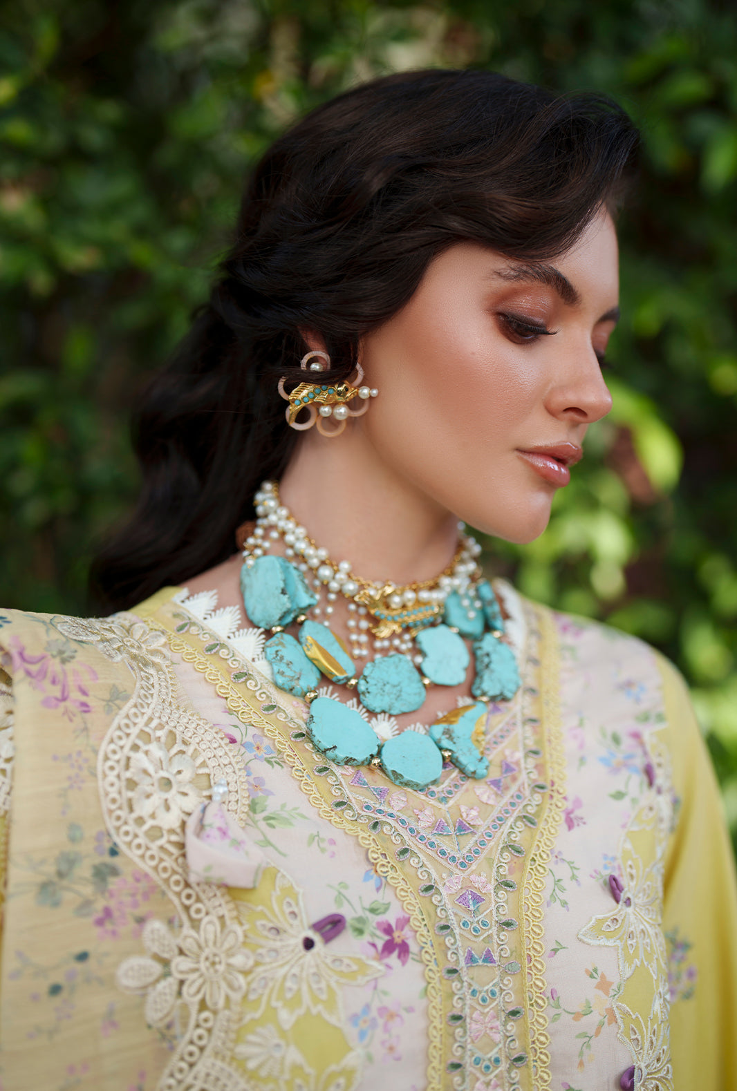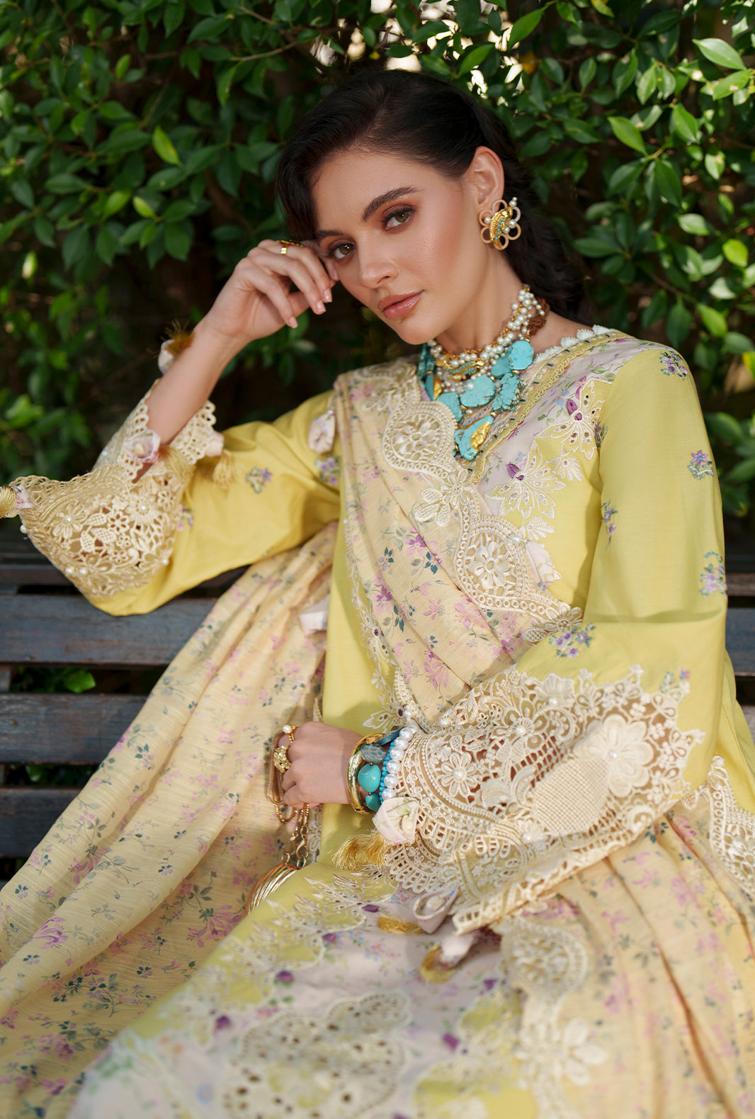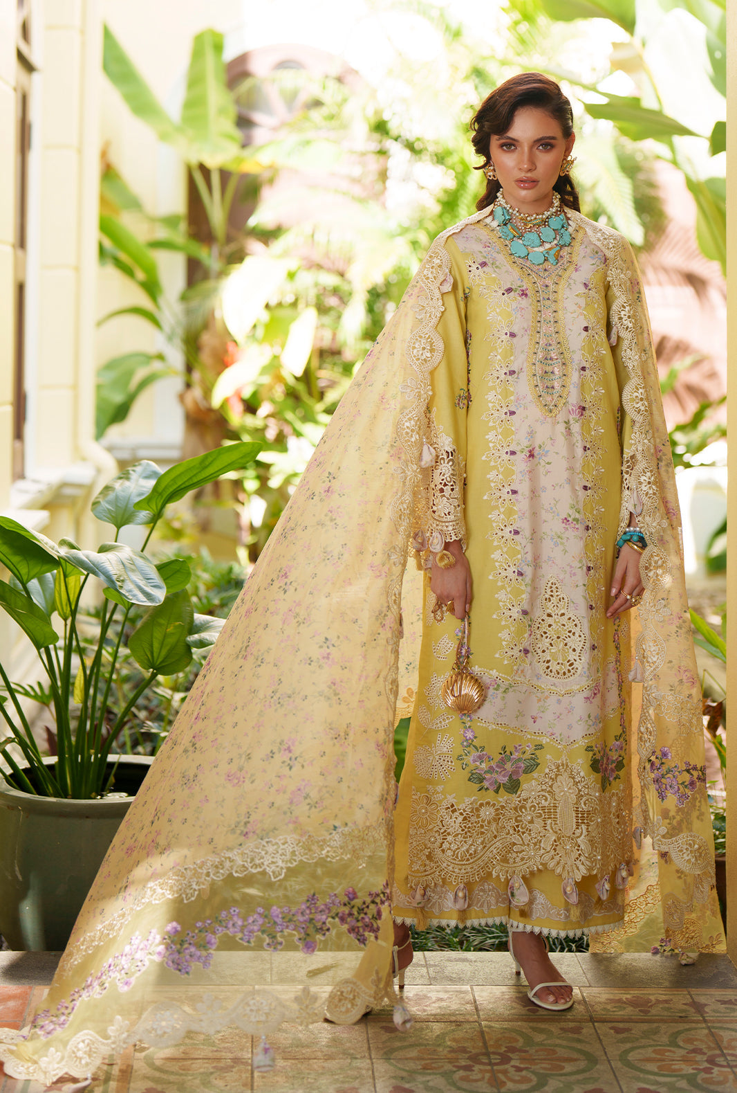 A graceful blend of printed and embroidered lawn, elevated with intricate organza detailing along the neckline, daman, and sleeves for a refined finish.