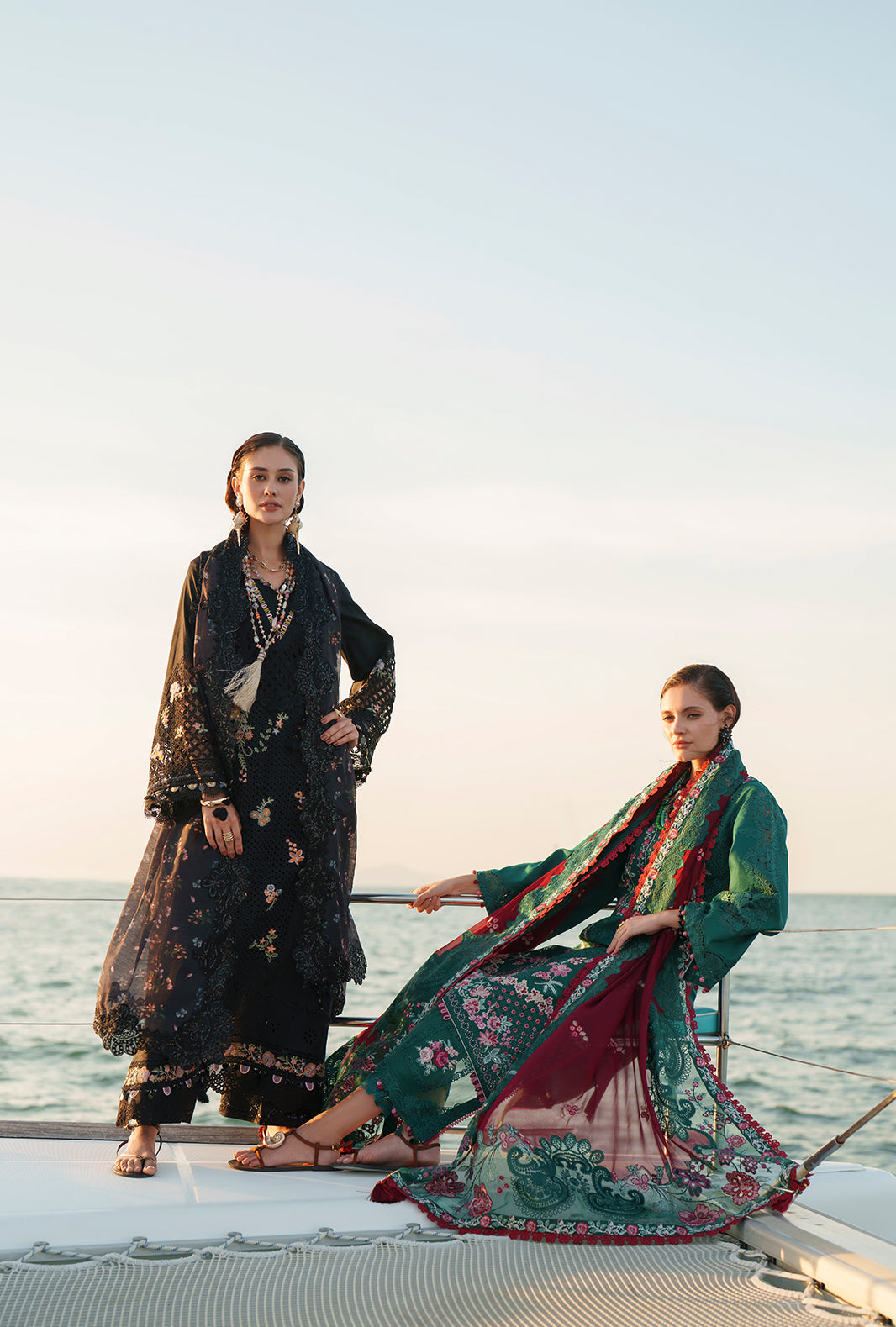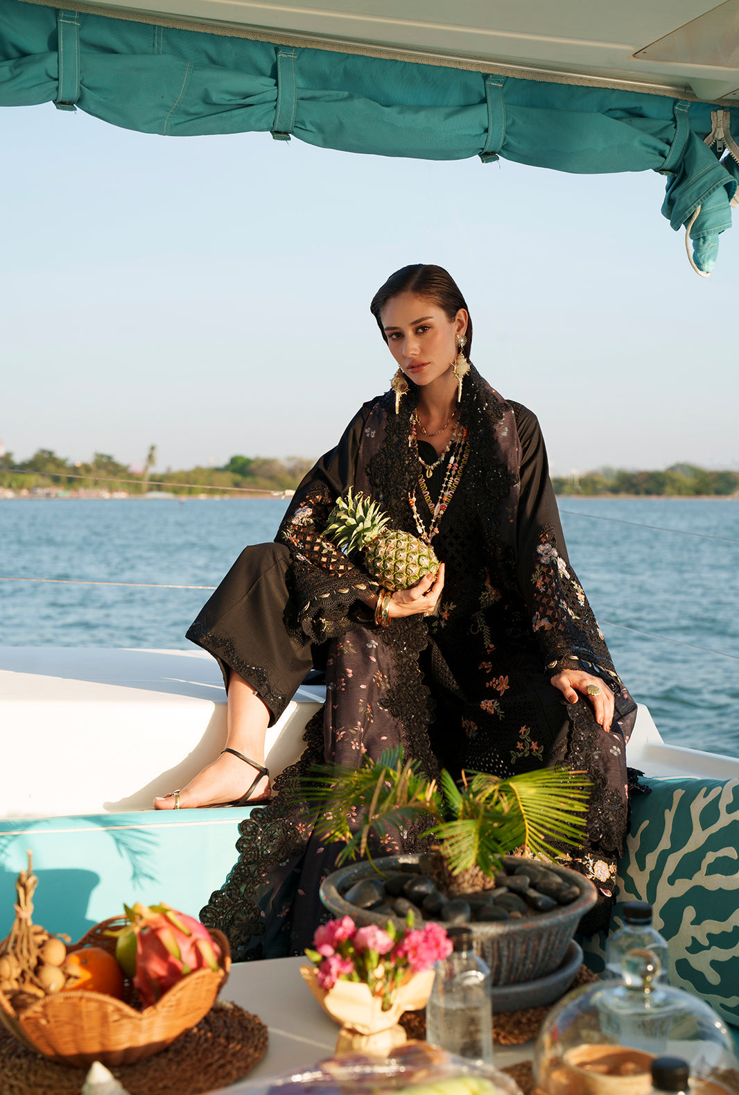 Paired with a printed monark dupatta and cambric trousers accented with organza, this look radiates timeless sophistication.