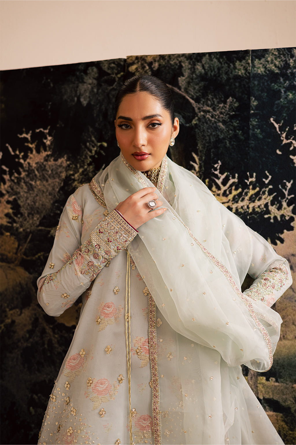 Organza Embroidered Sleeves.