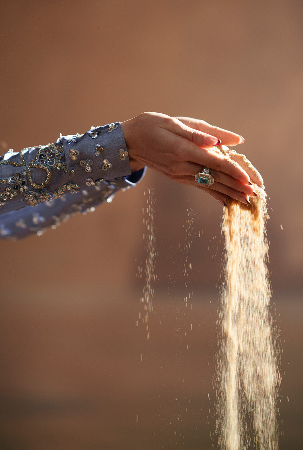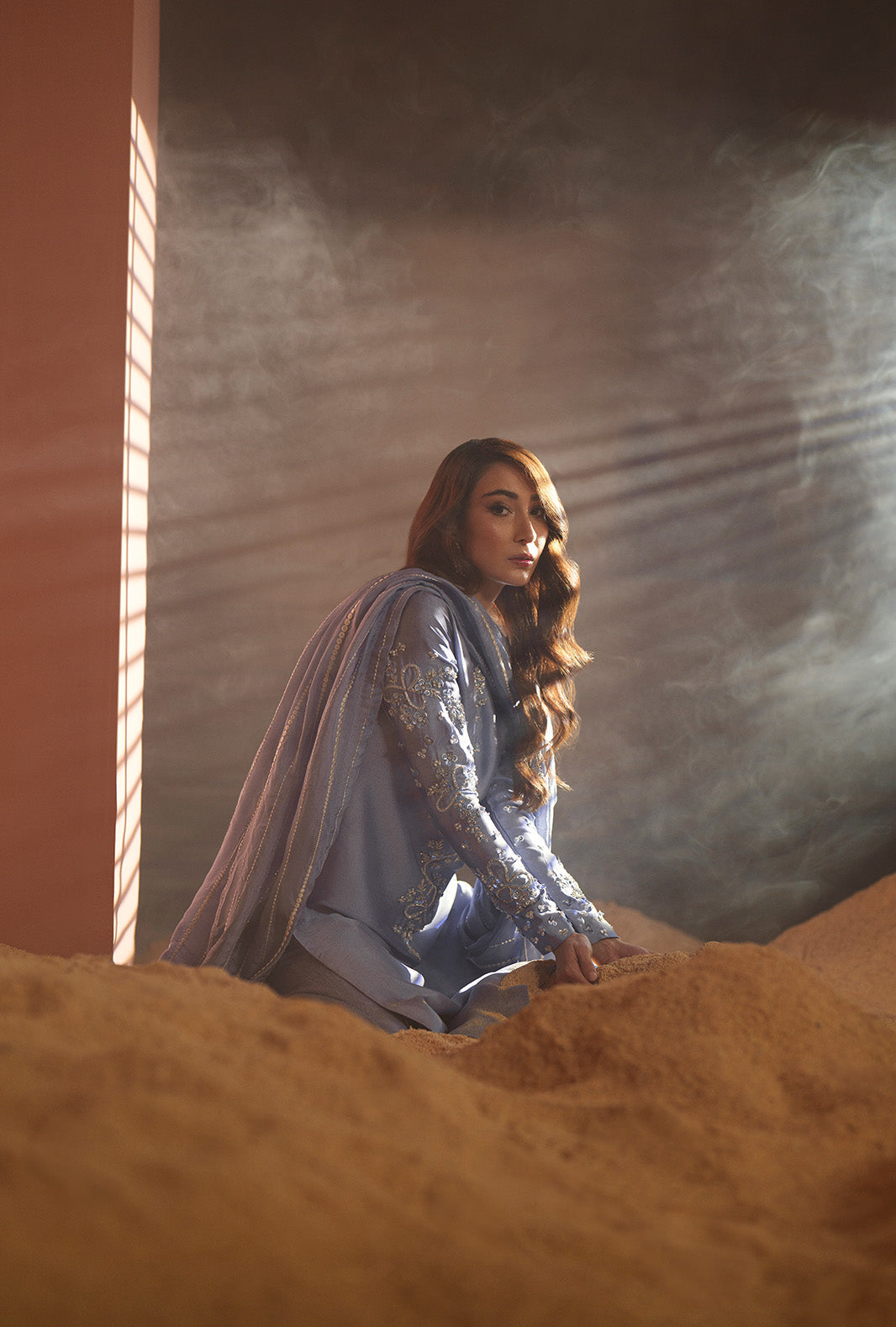 Paired with a silk embroidered dupatta, adding softness and refined detailing.